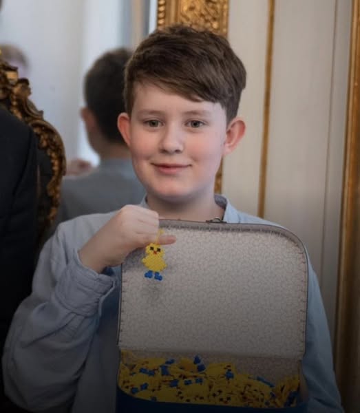 3 того часу Єнс почав виготовляти синьо-жовтих великодніх курчат із бісеру, а виручені з їхнього продажу кошти передає на допомогу одноліткам з України.